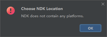如下图所示,在配置NDK时(Choose NDK Location),提示:NDK does not contain any platforms.
