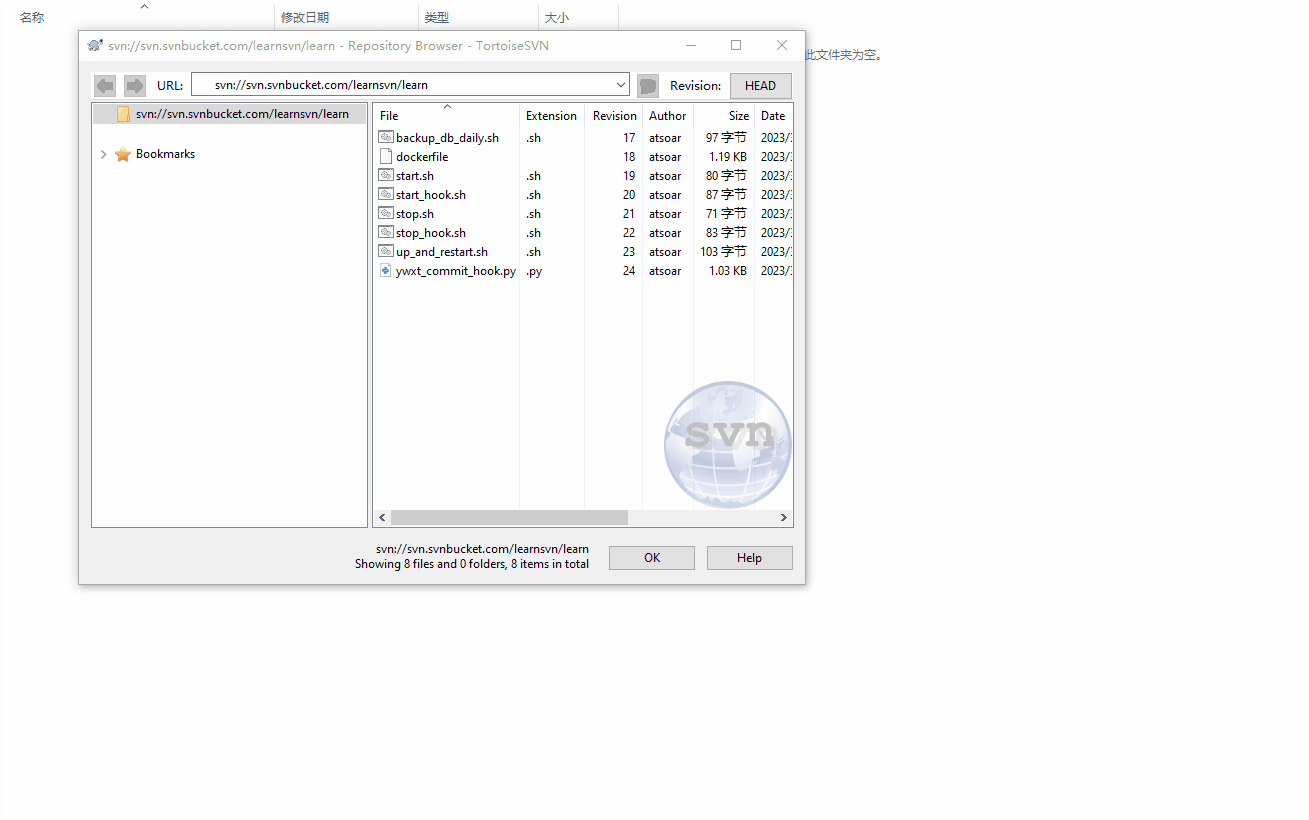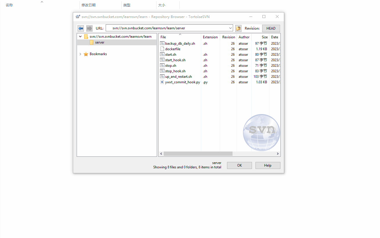 - 填入你的 SVN 仓库地址,点击确定就可以浏览到 SVN 仓库里的文件了