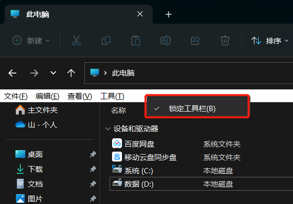 Win11资源管理器(文件夹)出现的菜单栏怎么隐藏?